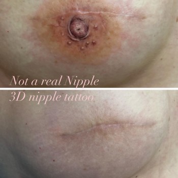 The most realistic results are often achieved with 3D nipple tattoos, which are real tattoos that use oscillating needles coated with pigment. The needles insert the pigment into the skin. This approach essentially creates a picture of a nipple and has no physical dimension, but it can look quite real although it does tend to look better from a distance than very close up.